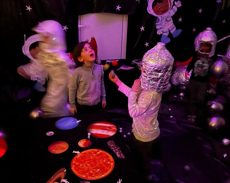 Copiii descoperă planete, stele, rachete și fenomene cosmice prin experiențe practice, experimente științifice și jocuri care le stimulează curiozitatea naturală.